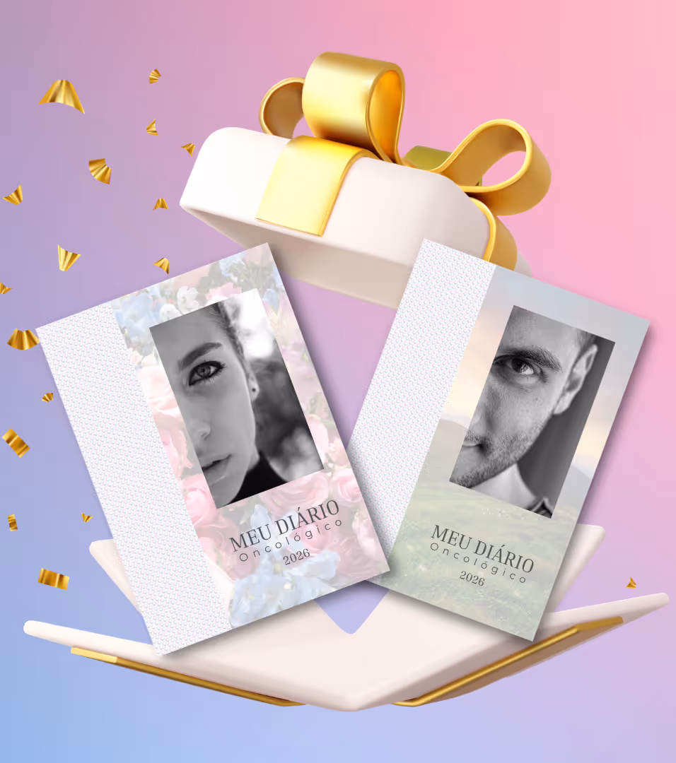 Ao iniciar seu acompanhamento, você recebe um Diário Oncológico em PDF, feito especialmente para ajudá-lo a registrar tudo sobre seu tratamento. consultas, medicações, dúvidas e observações do dia a dia. Ele será seu companheiro durante toda a jornada, garantindo que você nunca esqueça informações importantes e possa acompanhar seu progresso com